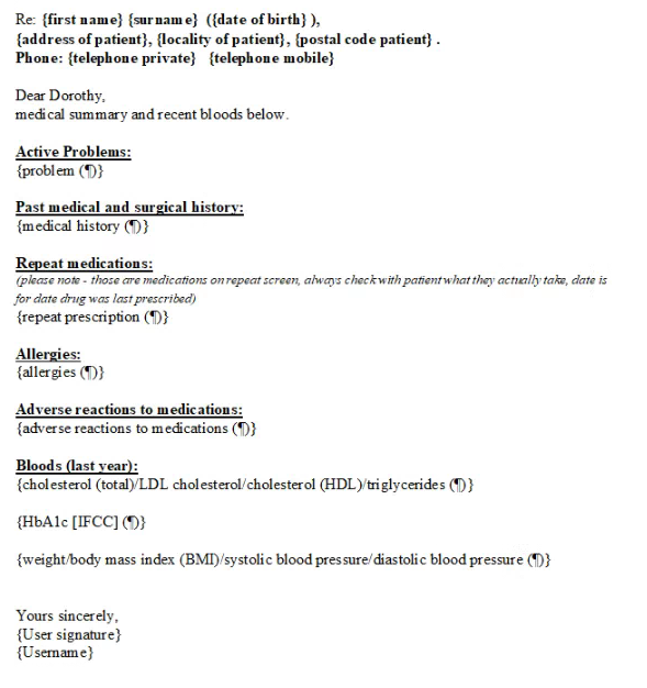 Letter to Dietician
